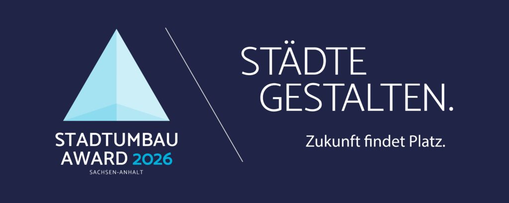 Zum neunten Mal wird 2026 der STADTUMBAU AWARD Sachsen-Anhalt verliehen. Das Kompetenzzentrum Stadtumbau in der SALEG Service GmbH richtet den Wettbewerb gemeinsam mit dem Ministerium für Infrastruktur und Digitales des Landes Sachsen-Anhalt unter dem Titel „Städte gestalten – Zukunft findet Platz“ aus und lädt zur Beteiligung ein.